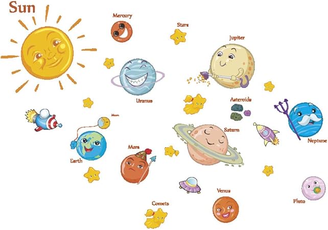 2 88 8 De Reduction Dessin Anime Systeme Solaire Stickers Muraux Pour Enfants Chambres Etoiles Espace Exterieur Ciel Stickers Muraux Planetes Terre