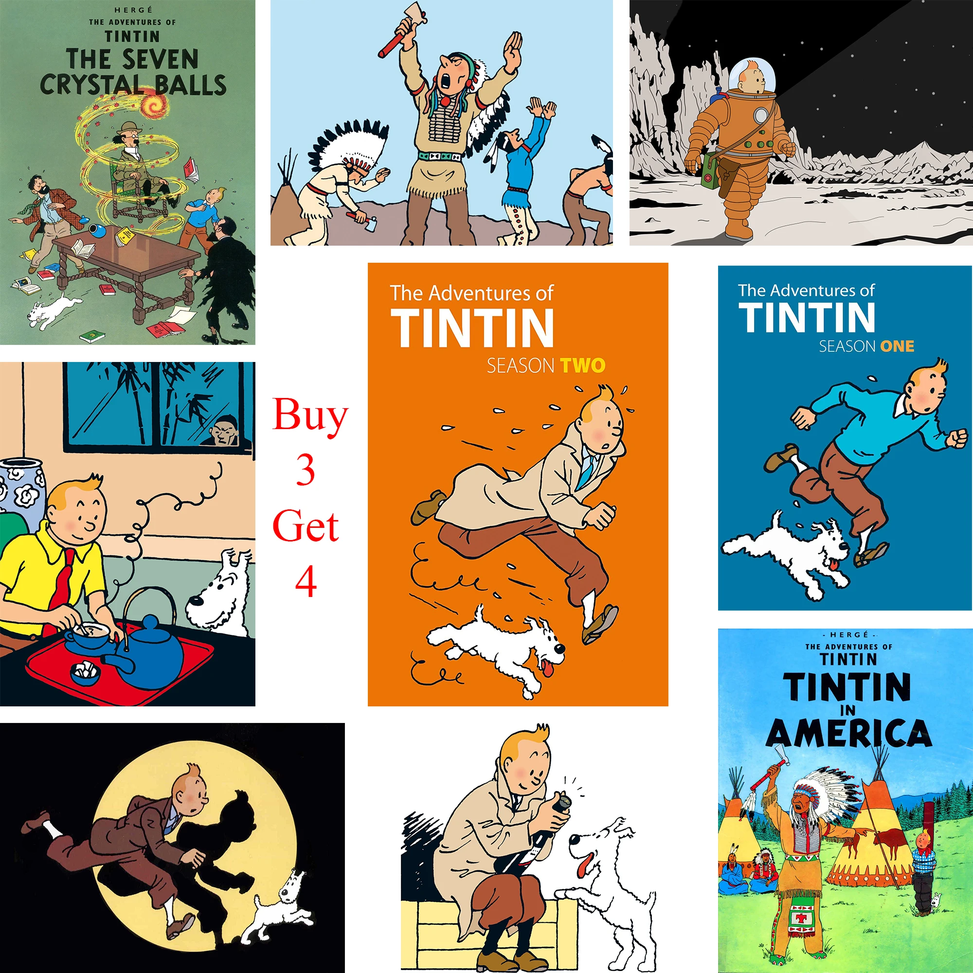 1 6 38 De Reduction Les Aventures De Tintin Affiches Dessin Anime Stickers Muraux Blanc Enduit Papier Imprime Image Claire Decoration De La Maison