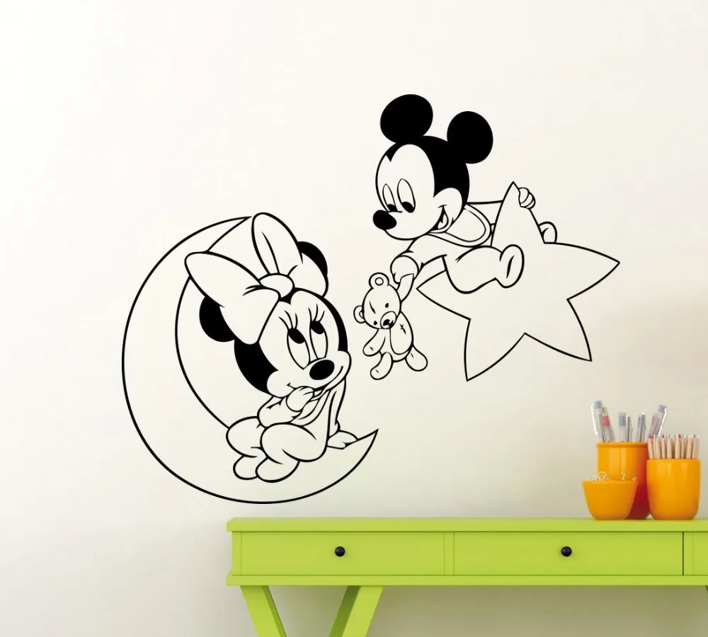 15 93 30 De Reduction Livraison Gratuite Mickey Mouse Minnie Mouse Lune Etoile Sticker Mural Pepiniere Dessin Anime Sticker Mural Decor Maison Bebe