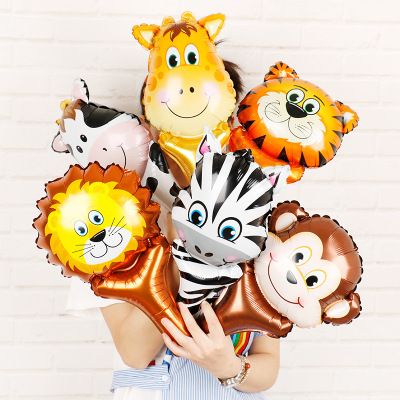 Acheter Chanceux Dessin Anime Animal Tete Lion Tigre Singe Vache Girafe Cheer Main Tenant Batons Feuille Ballons Decoration De Fete De 37 77 Du