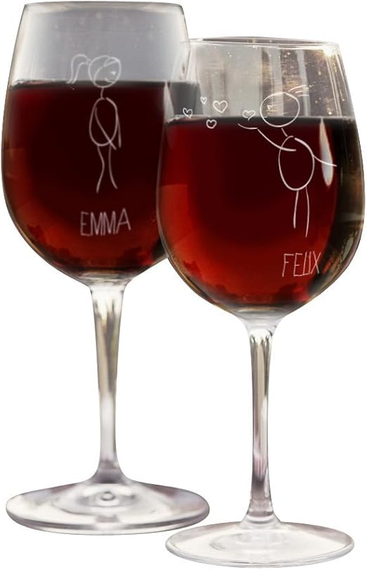 Verre A Vin Set Couple Avec Dessin Trait De