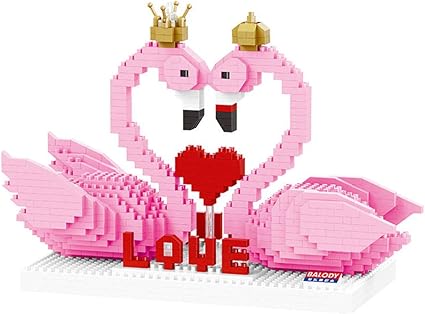 Mini Brique Rose Flamant Avec Couronne Amour Bloc 3d Diy